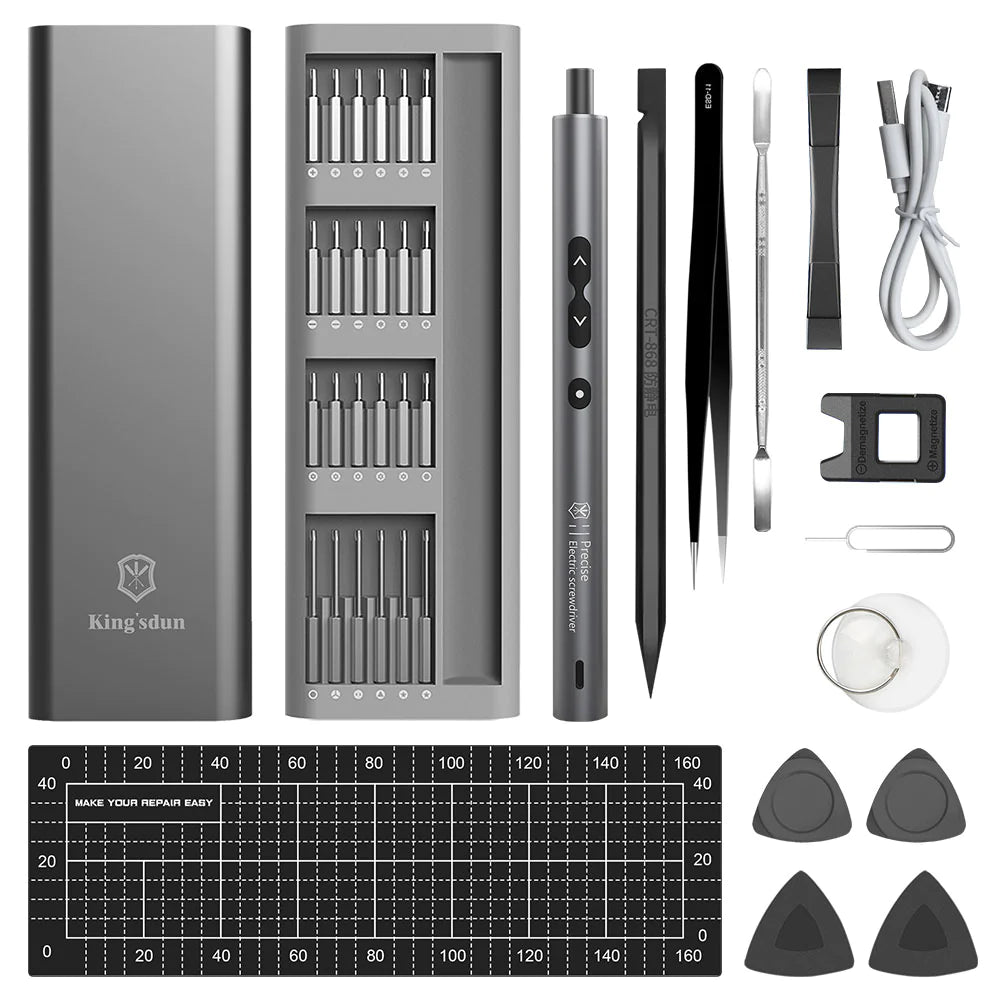 The Precision Pro Mini Electric Screwdriver Set is your ultimate compact tool for precise and efficient repairs. Perfect for professionals and DIY enthusiasts, this versatile set combines power, precision, and portability to handle a wide range of tasks with ease.